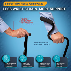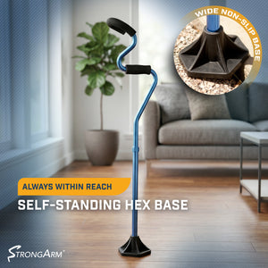 The StrongArm® Comfort Cane provides the ultimate support and stability for your mobility needs. StrongArm® is an FDA approved ergonomic cane that can be used on both right and left arms.